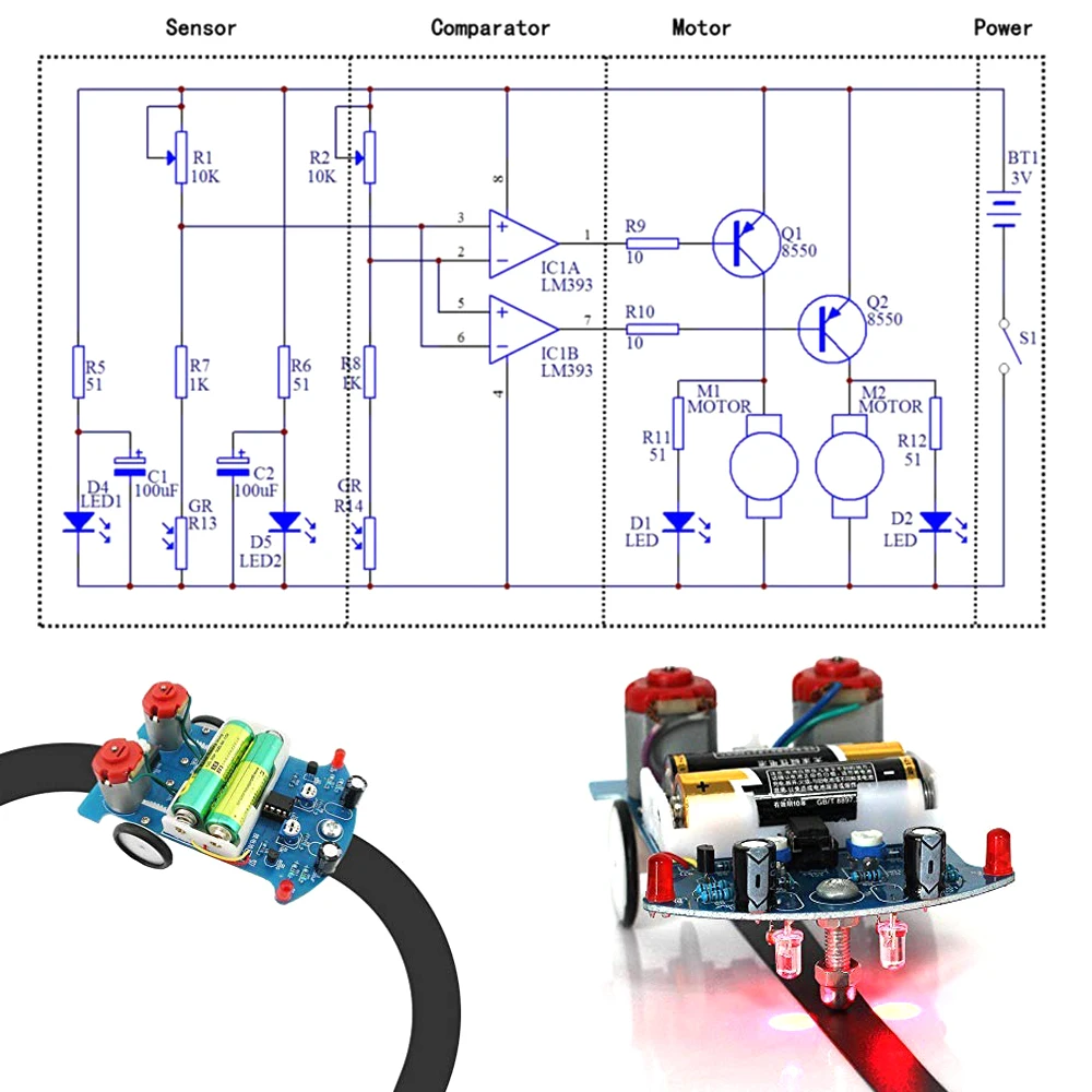D2-5 Intelligent Tracking Line Smart Car Suite DIY Kits DC 3V Motor Electric Accessories Soldering Project Kits