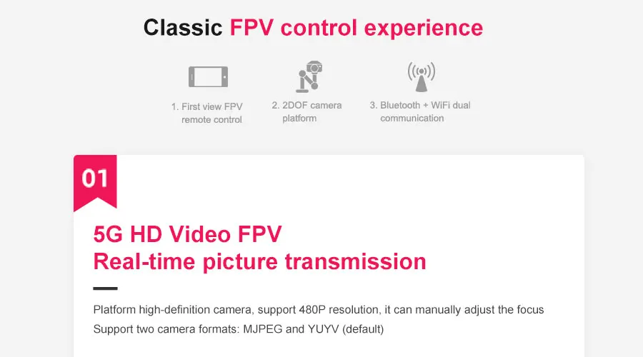 The car and camera platform can be controlled by Bluetooth APP by Android/iOS mobile; HD video real-time transmission can be realized by Raspberry Pi coming with 5G WIFI.
