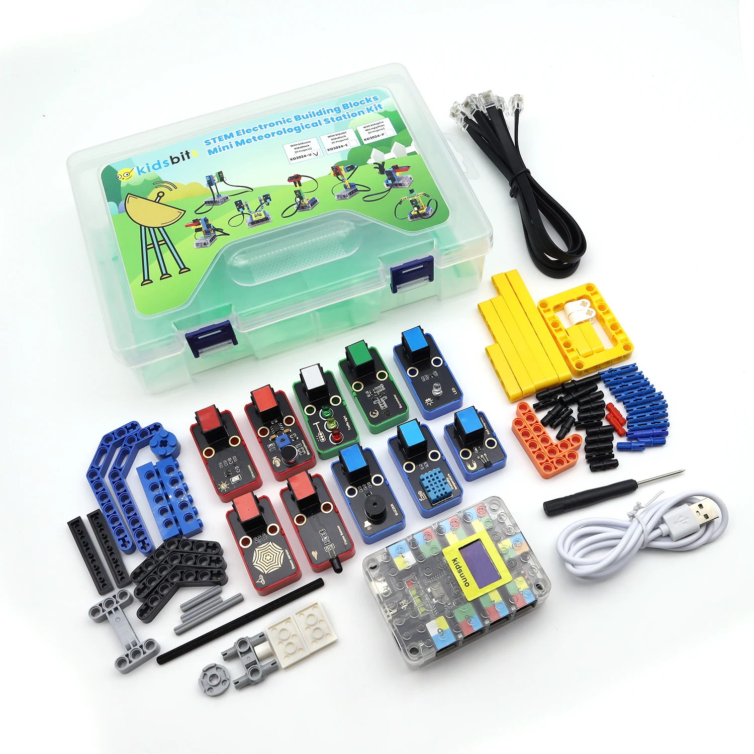 Designed especially for children aged 9–12, this STEM Electronic Building Blocks Mini Meteorological Station Kit provides a fun and educational introduction to electronics and programming. First of all, it is based on KidsBlock and the Python programming language. Moreover, the kit is fully compatible with LEGO building blocks, allowing children to learn while building creatively.