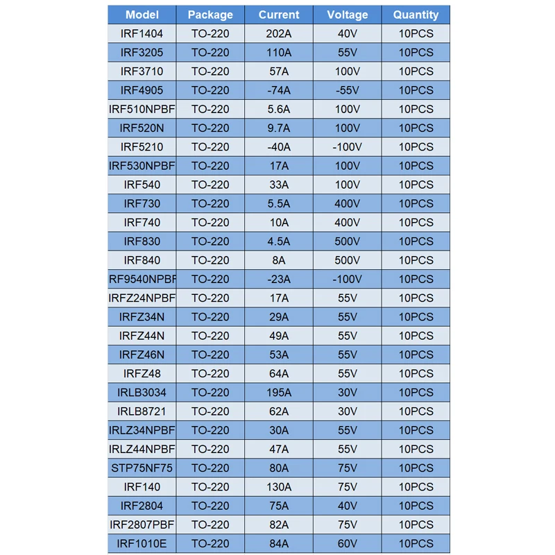 TO-220 Fet Irf3205 Irfz44N Irf740 Irf520N Irf540 Irf4905 Irf840 Irlb8721 Irf1404 Irlb3034 Irf510 Irf1404 Power Mosfet Transistor