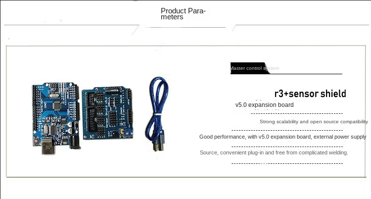 3+sensor shieldv5.0 expansion board has strong expansibility and good open source compatibility. With v5.0 expansion board, ShielDV5.0 can be connected to external power supply to facilitate cable insertion and avoid tedious welding.
