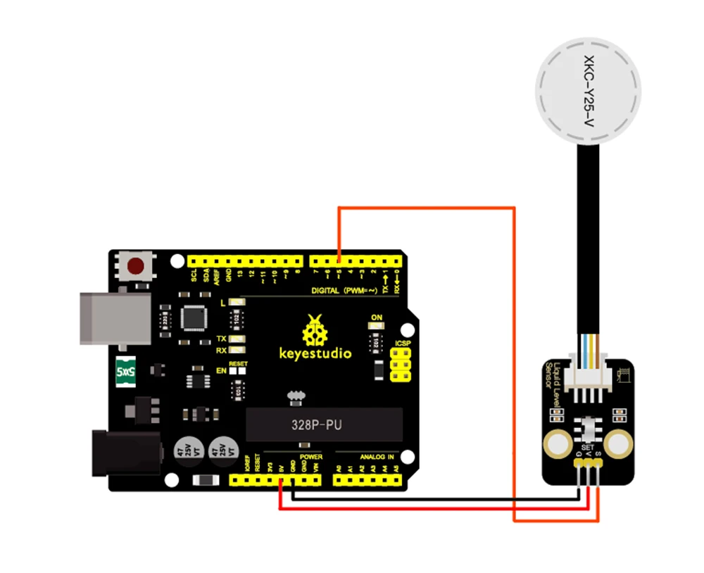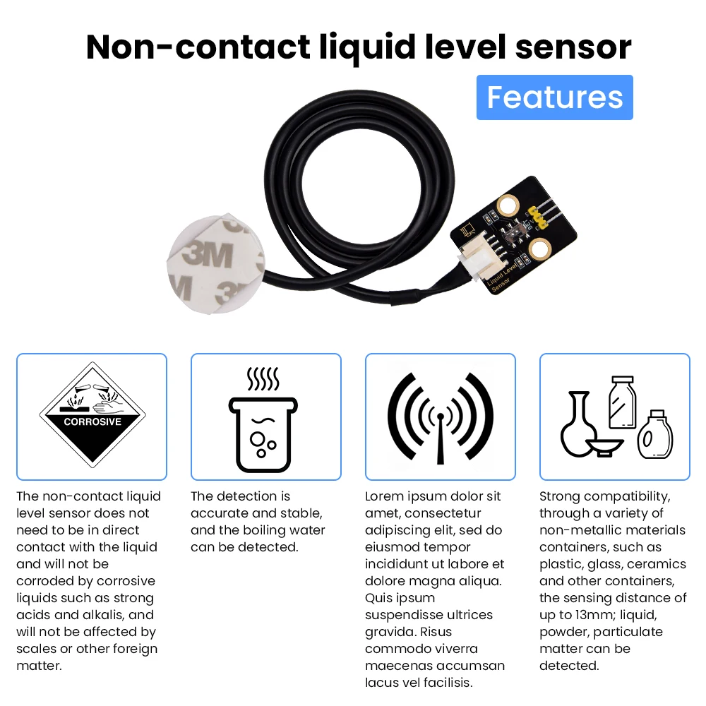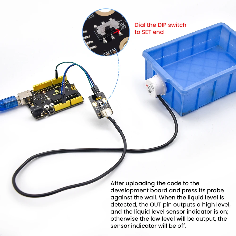 This is a non-contact liquid level sensor can detect the liquid height in the closed container, overcoming the problem of thick container walls.