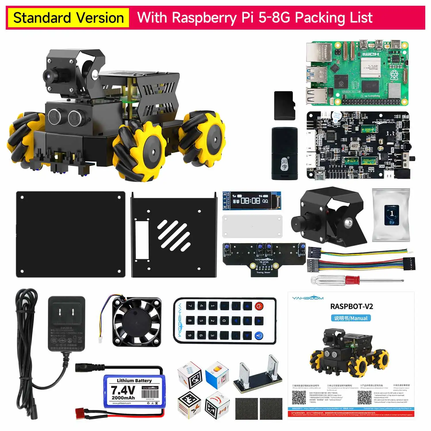 Yahboom 4WD Raspbot V2 AI Large Model Robot Kit for Raspberry Pi 5 Beginners Educational Project ROS2-Humble Python Programming