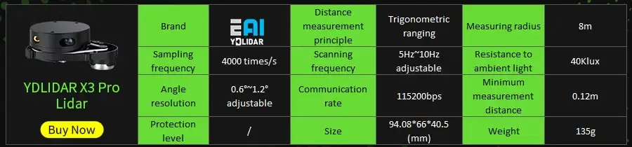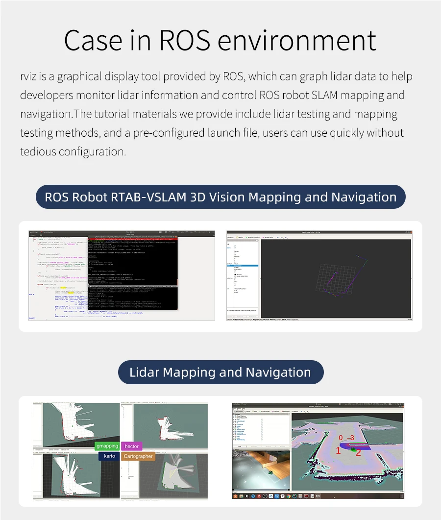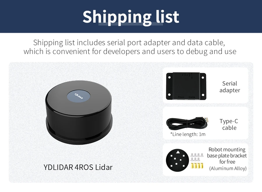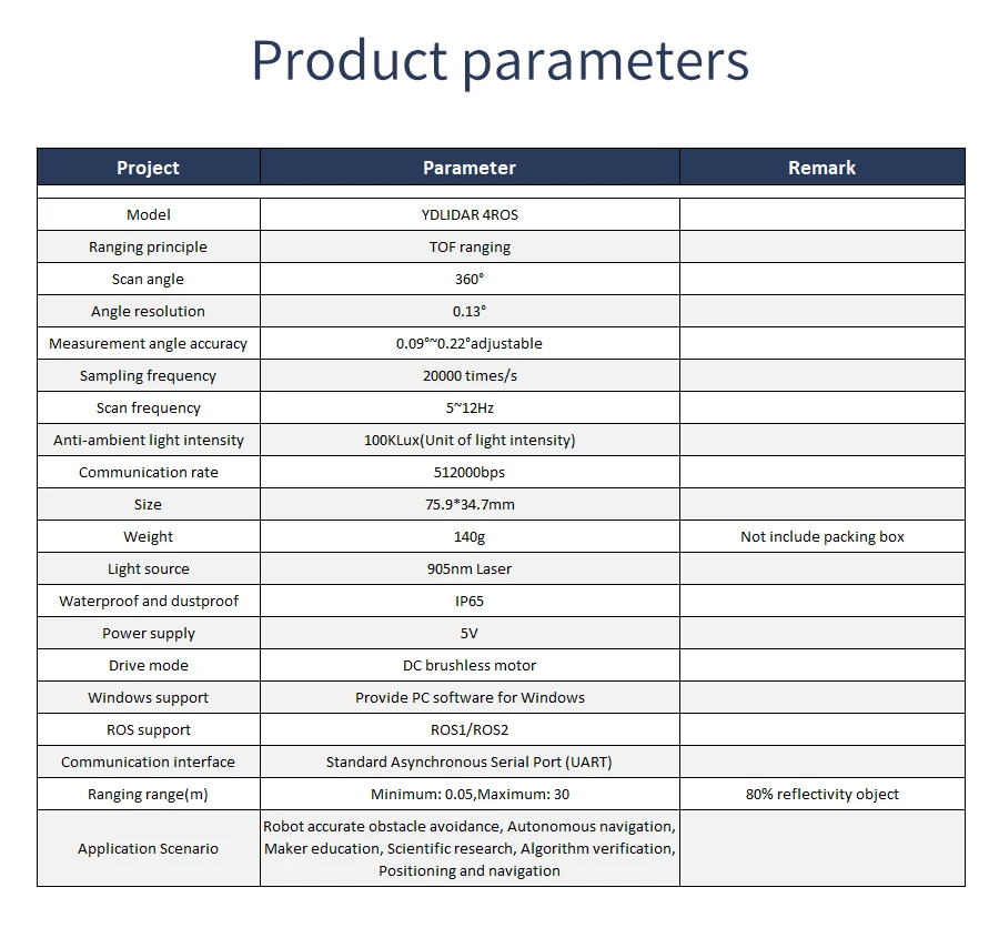 This YDLIDRA 4ROS lidar is only 7.58cm*3.47cm in size. It comes with a motor driver with speed regulation function inside, and IP65-rated closed protective cover on the outside, which is waterproof and dustproof. Using TOF technology, sampling frequency is 2000 times/S, scanning radius can reach about 30m. Due to it can resist the strong light environment of 100KLux, users can use it to achieve high-precision ranging and mapping no matter indoors or outdoors. We will provide open source codes for ROS1/ROS system and robot lidar mapping scanning.